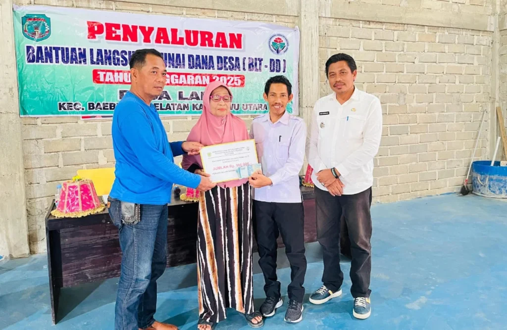 Pemerintah desa (Pemdes) Lara, kecamatan Baebunta Selatan, menyalurkan bantuan langsung tunai dana desa (BLT-DD) tahun anggaran 2025, di Gedung PB Lara Utama, Rabu (24/12/2025).